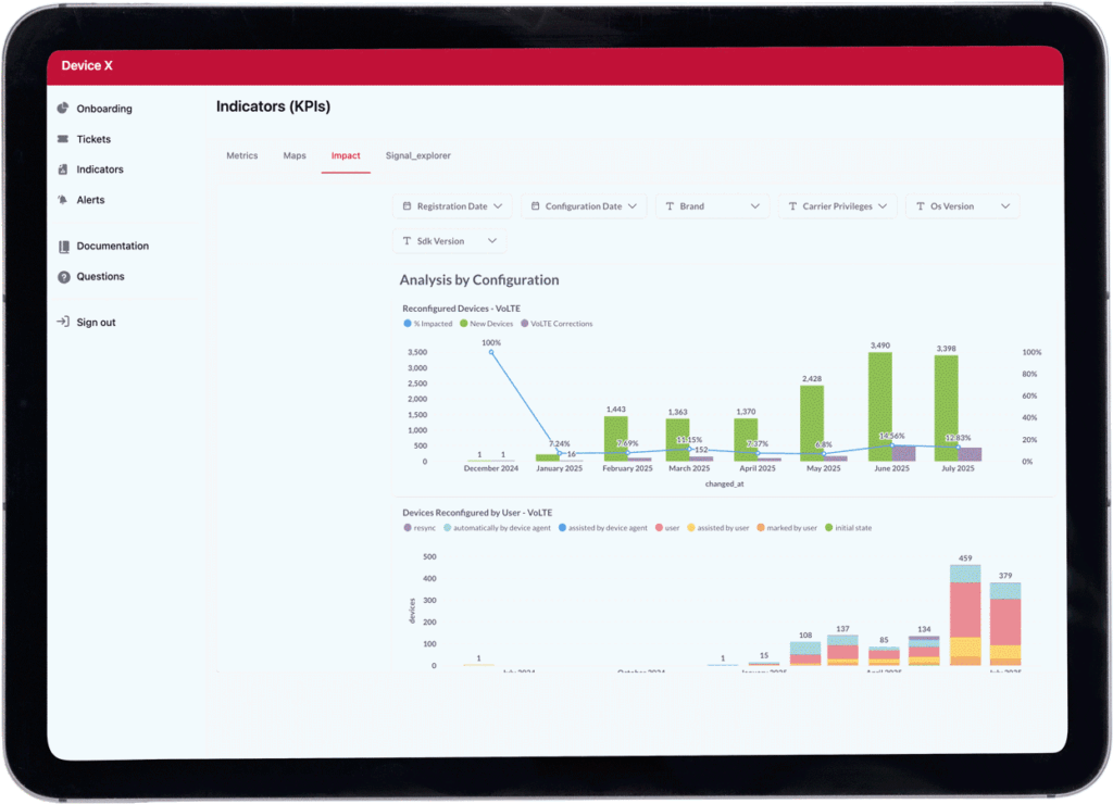 OCTO CX transforms this information into executive reports and actionable dashboards, enabling operators to anticipate problems, optimize the network, and improve the experience seamlessly.